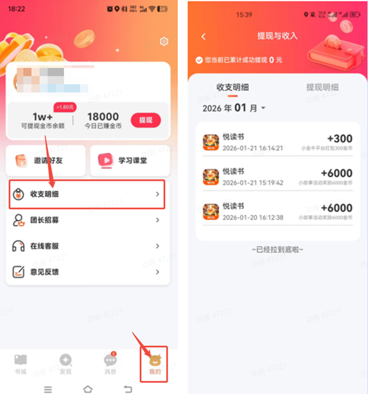 软件的核心亮点在于 “阅读即赚金”,打开 APP 进入书城页面,挑选喜欢的小说开始阅读,就能同步获取金币奖励,把日常阅读时间转化为实际收益。这种模式打破了传统阅读的单一性,让休闲时光更有价值。除了基础阅读赚金币,平台还搭建了完善的奖励体系,通过看视频广告、完成任务等简单操作,就能额外领取红包奖励,进一步提升收益空间。